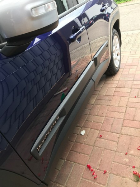 Für den Renegade-Schriftzug sind die vorderen Leisten ausgeschnitten. In den hinteren Leisten findet sich das Jeep-Grill Symbol wieder. Die Leisten sind relativ dick und verhindern, vor allem in engen Tiefgaragen sehr gut, dass man sich aus Versehen einen Macken holt. (Hilft auch gut gegen Einkaufswagen und Türen auf dem Supermarktparkplatz)
