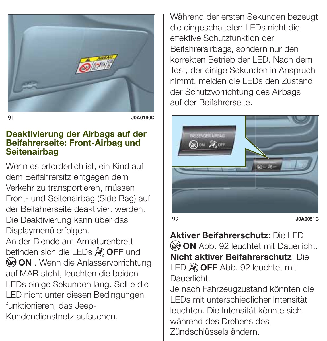 Die Anzeige für den Beifahrerairbag hat zwei LEDs.