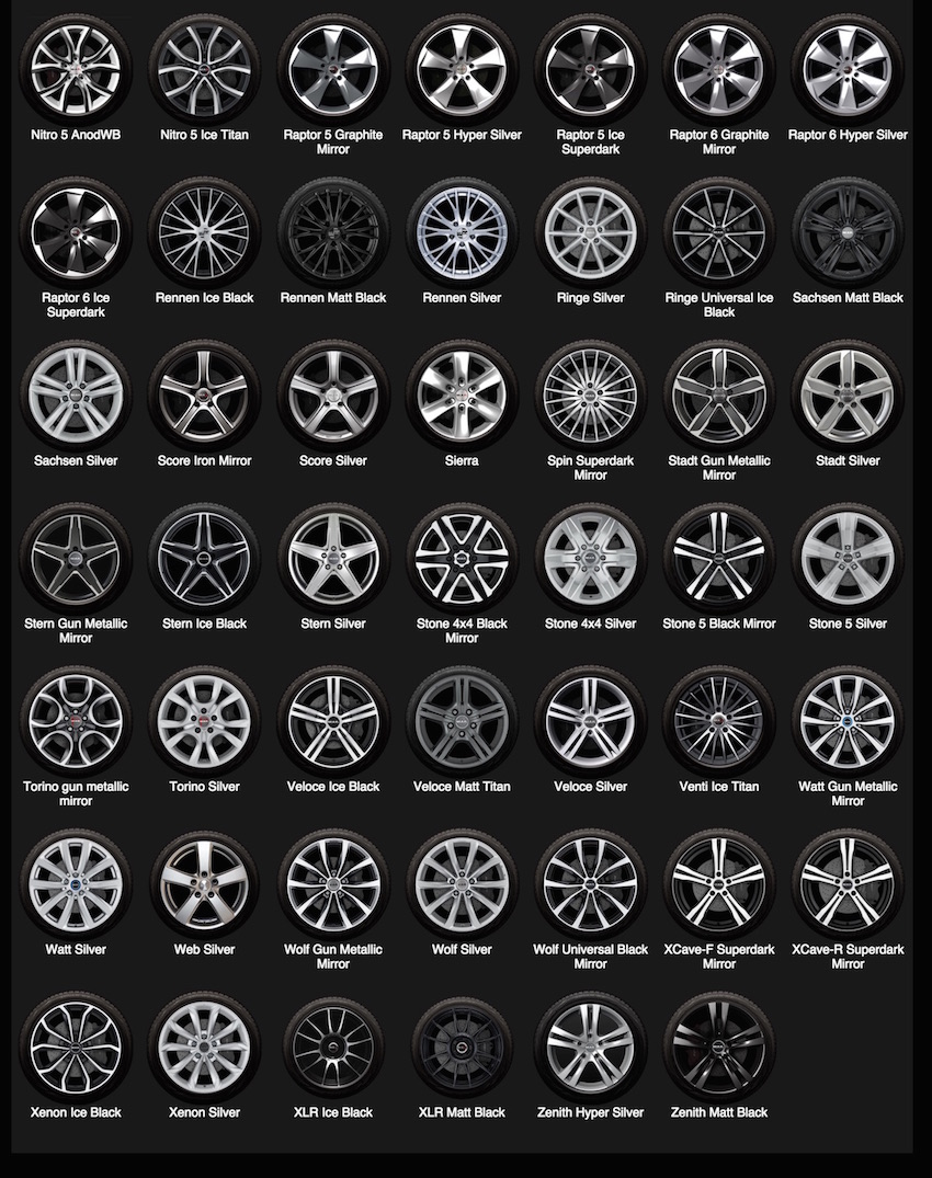 • Damit meinen Tina und meine Person, dass man bei diesem Konfigurator alle Felgen dieses Planeten einsetzen kann um zu sehen ob diese zum Auto passt.