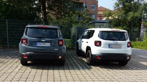 Na, noch ein Nachtrag vom Freitag. Auf Tuchfühlung auf dem Firmenparkplatz und dann auch noch mit dem Kollegen ein bisschen geschnackt und gleich ein paar Details zu Zubehör ausgetauscht. Der weiße ist ein Renegade Sport.