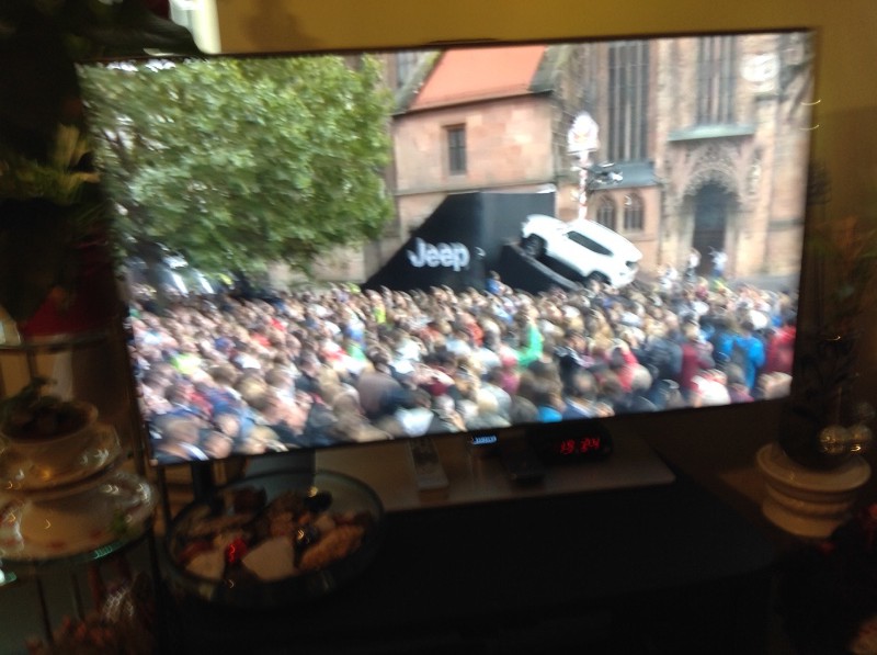 Ja, das Bild ist schon besser. Passend zum Event wäre aber wohl eher ein Trailhawk mit ein bisschen Offroad-Ausrüstung gewesen und nicht so eine langweilige weiße Version. Aber vielleicht stehen die ja an einer anderen Ecke.
