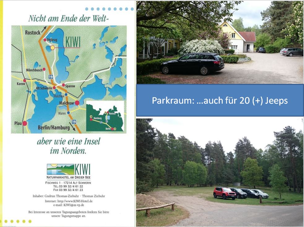War vergangenes WE gerade ein Stück weiter von Linstow, im Van der Falk Golfhotel Seran/Kuchelmiß. Dort sind auf drei Flächen einige Parkplätze am Hotel und 150 m weiter eine große Fläche am Golfplatz.