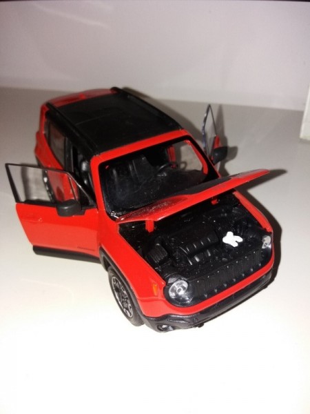 Jetzt habe ich es ein paar Nummern größer gemacht - im Maßstab 1:24. Sicher ist auch hier einiges etwas "improvisiert"... es war gar nicht so einfach, einen halbwegs passenden Dachkorb zu finden und somit brauchte ich ein anderes Modell zum "ausschlachten" (das war ein Trabant! den ich günstig auf dem Flohmarkt schiessen konnte). Ein etwas einfacheres rotes Renegade-Modell musste dann noch ein Rad spendieren und Zusatzscheinwerfer zu basteln war auch eine kleine Herausforderung.