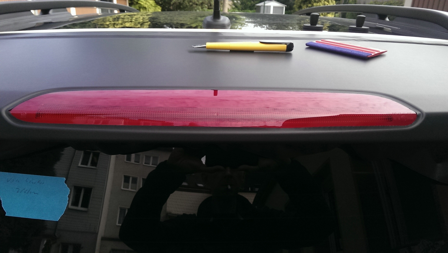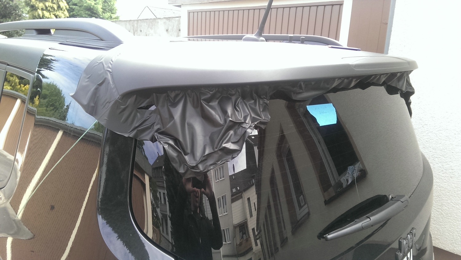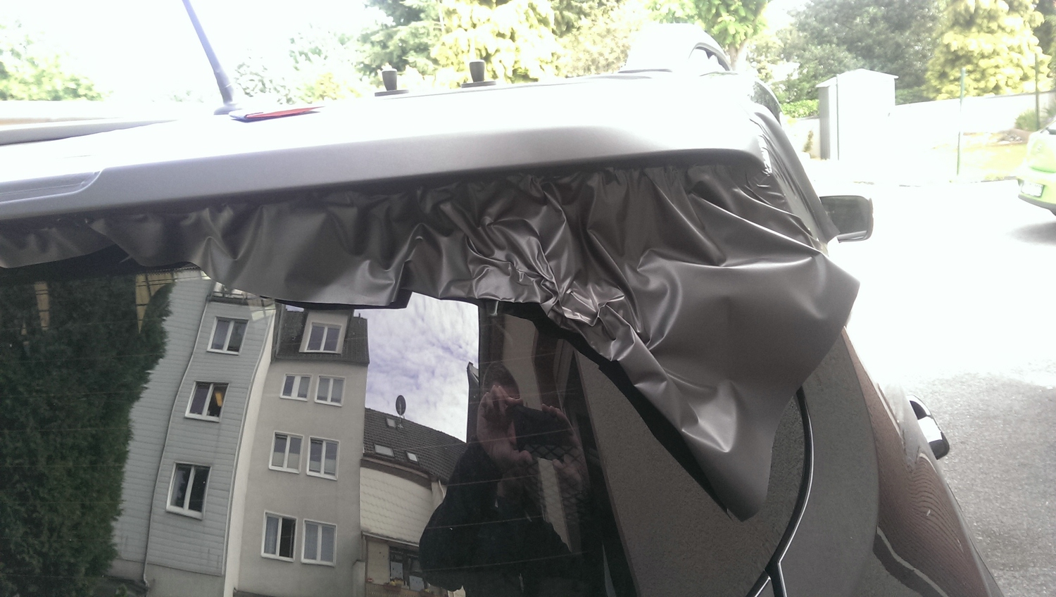 Heute habe ich mal die seitliche Dachkante in matt foliert, quasi analog zu den zweifarbigen Lackierungen mit schwarzem Dach die es ab Werk gibt.