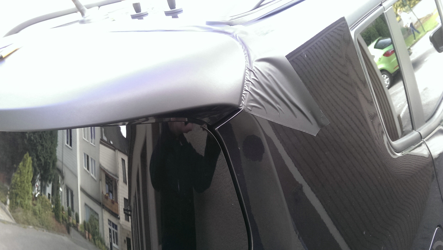 Heute habe ich mal die seitliche Dachkante in matt foliert, quasi analog zu den zweifarbigen Lackierungen mit schwarzem Dach die es ab Werk gibt.