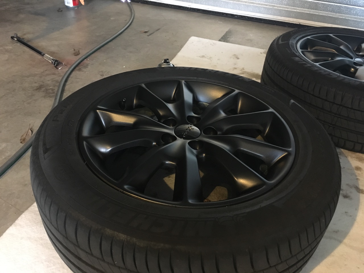 Eine Felge musste ich nach dem Trocknen und der 4ten Schicht wieder runter knibbeln. Da war ich zu ungeduldig und hatte eine Rotznase fabriziert