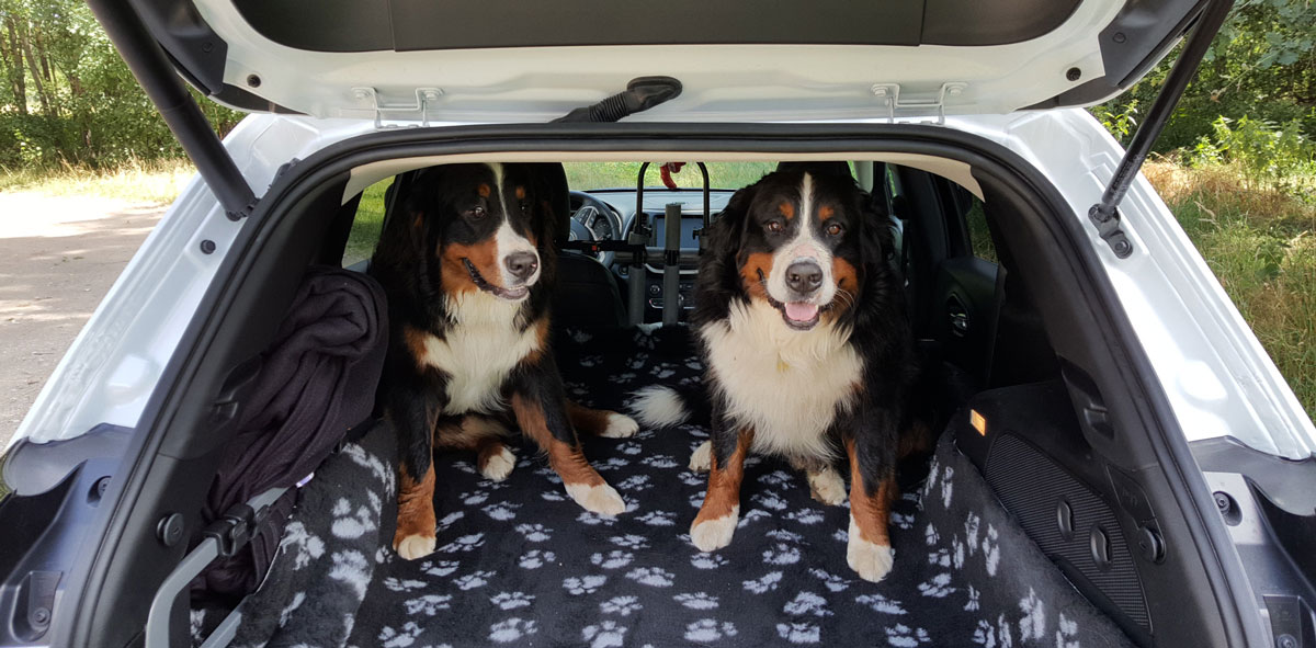 Transportkorb kam aufgrund der rassetypischen Größe der Hunde nicht in Frage