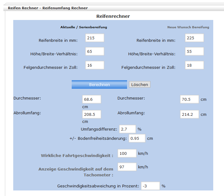 Die Logik ist aber immer, größere Felge = kleinere Flankenhöhe des Reifens. Das gilt solange man in der zulässigen Tachoabweichung und vom Hersteller vorgegenen Federwegen und Lenkeinschlägen bleiben will.