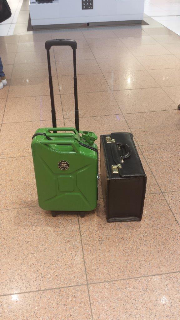 Wir haben ihn noch und meine Frau nutzt ihn immer als Handgepäck. Man erregt auf jedenfall aufsehen, nun wer das nicht mag, für den ist der Kanister nicht zu empfehlen.