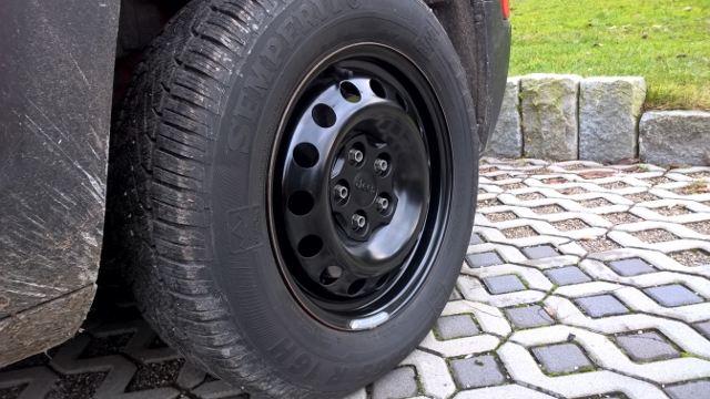 Bilder werden gemacht, auch wenn es jetzt nicht spektakulär ausschaut mit den schwarzen Standard-Stahlfelgen die außen rundum ja so gelocht sind. Bei den Stahlfelgen von Mopar schaut der Übergang Kappe-Felge halt besser aus weil die Linienführung ineinander übergeht.