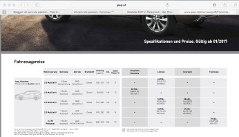 Modelle 2017 in Österreich - der Cherokee wird teurer