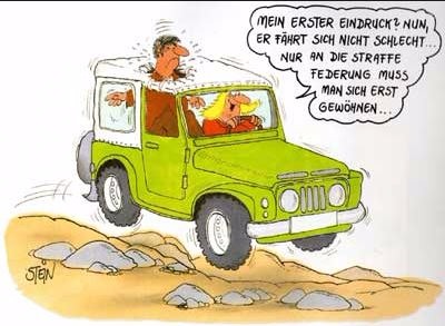 Genüsslich kurbelt der FIAT 500-Fahrer die Scheibe herunter und ruft nach unten: "Na, geben Sie ihren Pferdchen jetzt zu saufen?