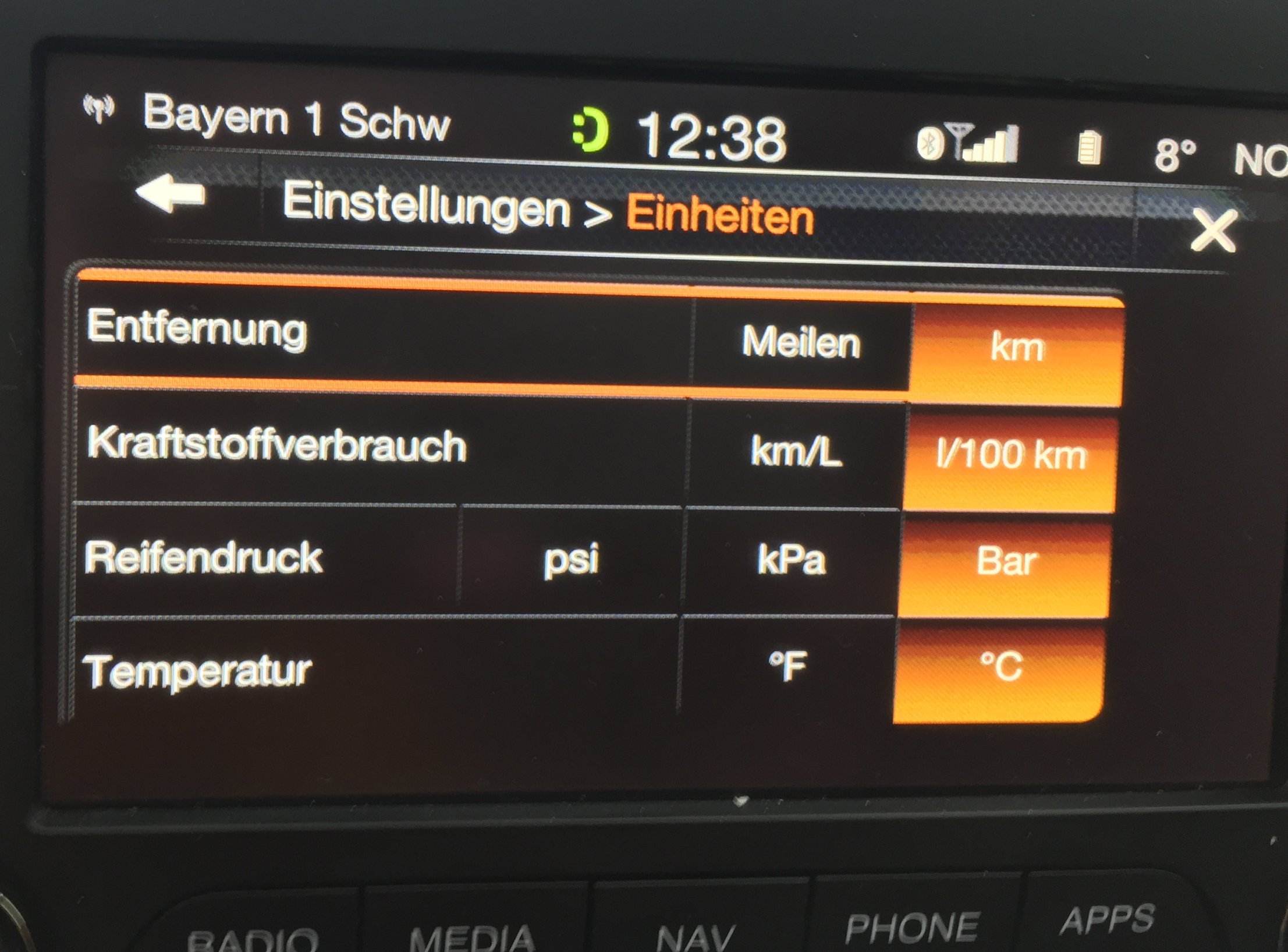 Ist wie gesagt im Uconnectmenü zu finden und zwar unter Einstellungen und dann unter Einheiten und da dann in der zweiten Zeile