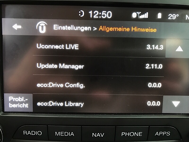 In meinem Fall bietet die Seite folgendes Update: UCONNECT®6.5 ECE RG4 16.05.32 MY15~16 BU(520)