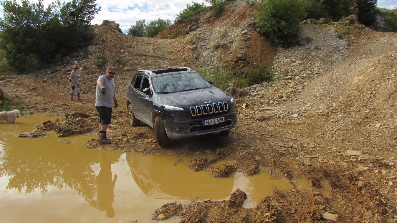 Das mit dem Aufsetzen bei Kuppen ist nicht wirklich schlimm, wenn man wieder rückwärts zurück kommt. Der Cherokee ist unten ganz toll gebaut. die Kardanwelle läuft in einem Tunnel nach hinten, so dass die beim Aufsetzen eh nichts abbekommt. Damit konnten die Verantwortlichen an den Stationen bei mir aber auch schnell einschätzen, was für mich fahrbar ist und wo es eben ganz sicher nicht mehr geht. Hab ich's dann doch mal noch versucht und es ging eben nicht, dann war das auch kein Problem.