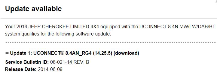 ist richtig das Firmware-Update (also Uconnect Software Update) ist aktuell beim 2014er Modell Cherokee: 14.25.5