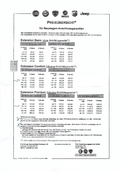 Hat irgendjemand einen Überblick was es da Alles gibt? Wenn ich bei My Jeep/ Mopar eingeloggt bin zeigt er immer irgendwas von "Easy Care" bei meinen beiden an. Gibt es da noch mehr, zum Beispiel bei einer Zahlung von bspw. 59 Euro im Monat sind alle Inspektionskosten gedeckt oder sonstwie etwas in der Art?