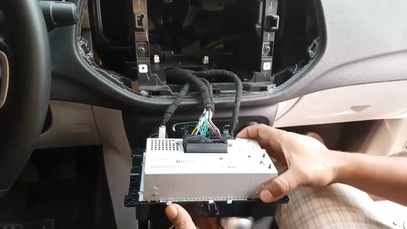• Die Blende um das uConnect ist nur geklipst und kann samt Lüftungsgitter herausgehebelt werden. Das uConnect selbst ist nur mit vier Schrauben befestigt.