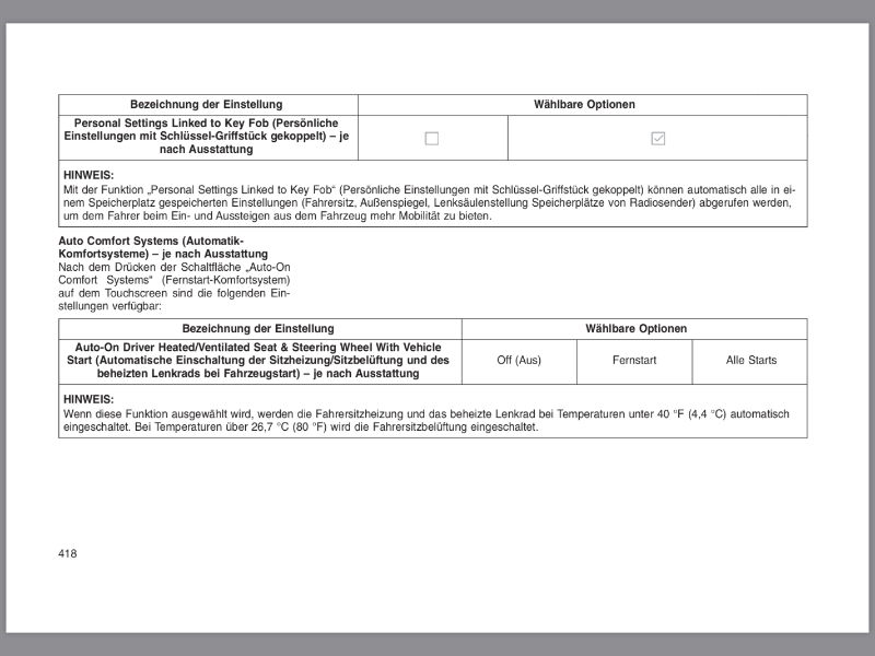 Warum kann die Lenkrad und Sitzheizungnicht ausgeschalten werden? Im Display unter Comfort-Einstellung auf AUS gestelltund ab 5 Grad werden sie einfach eingeschalten. Ich finde diese Einrichtungsehr unangenehm, da zu hohe Temperaturen. Gibt es eine weitere Möglichkeit einer autorisiertenAusschaltung?