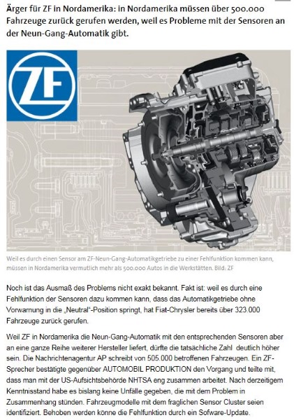 Gerade in diesem Fall scheint es doch aber (auch) ein Zulieferer - Problem zu sein. In den USA findet wohl aktuell eine Problemlösung zwischen ZF, den Großkunden von ZF und der US-Aufsichtsbehörde im Gange. FCA ist (aktuell) wohl nur der umsatzstärkste betroffene Konzern.