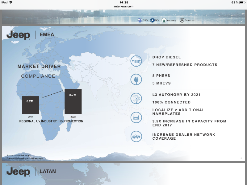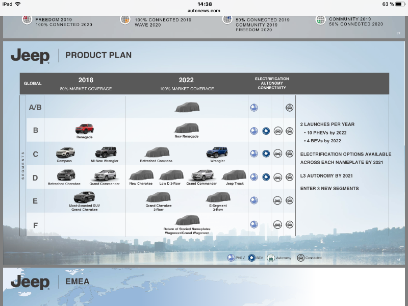 Gerade in Berlin stellt Fiat Chrysler den Plan für die nächsten 5 Jahre vor, darunter hier schon mal die Pläne für die Marke Jeep :