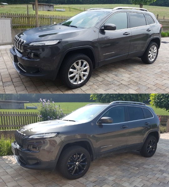 Fotos sind in meinem Profil.Ja Chief, die Farbe passt sehr gut. Ich werde mich aber bei meinem schwarz glänzenden Cherokee eher für dunkelgrau seidenmatt oder vielleicht auch ein anthrazit entscheiden.