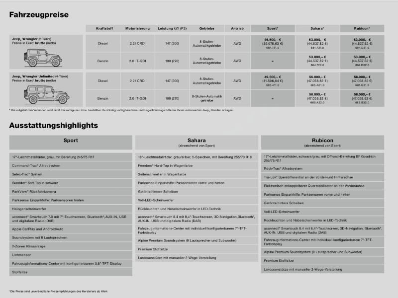 Leak Deutsche Preisliste vom Wrangler JL