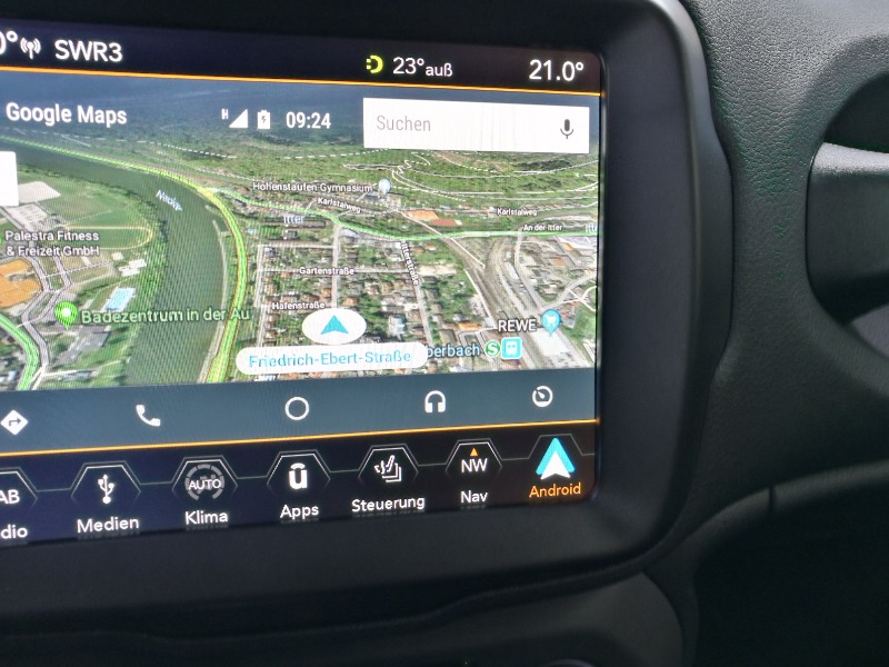 Peer USB Kabel mit Uconnect verbinden,und dann sollte im Display rechts das Blau Weiße Rechteck zu sehen sein.