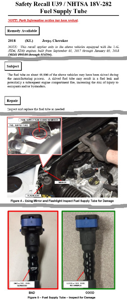 - U39 - Beschädigter Benzinschlauch, betrifft rund 48.900 Fahrzeuge mit dem 2.4er Motor: