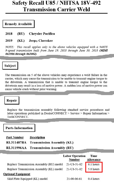 - U85 - Fehlerhafte Schweißnaht 9-Gang Automatik, betrifft nur 5 Fahrzeuge, Getriebe muss getauscht werden, lohnt sich ebenfalls so richtig.