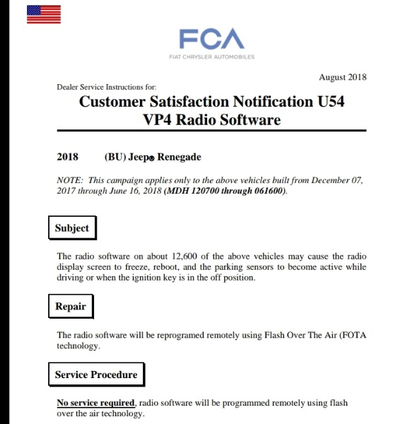 U54 Renegade MY2018 Update Radio
