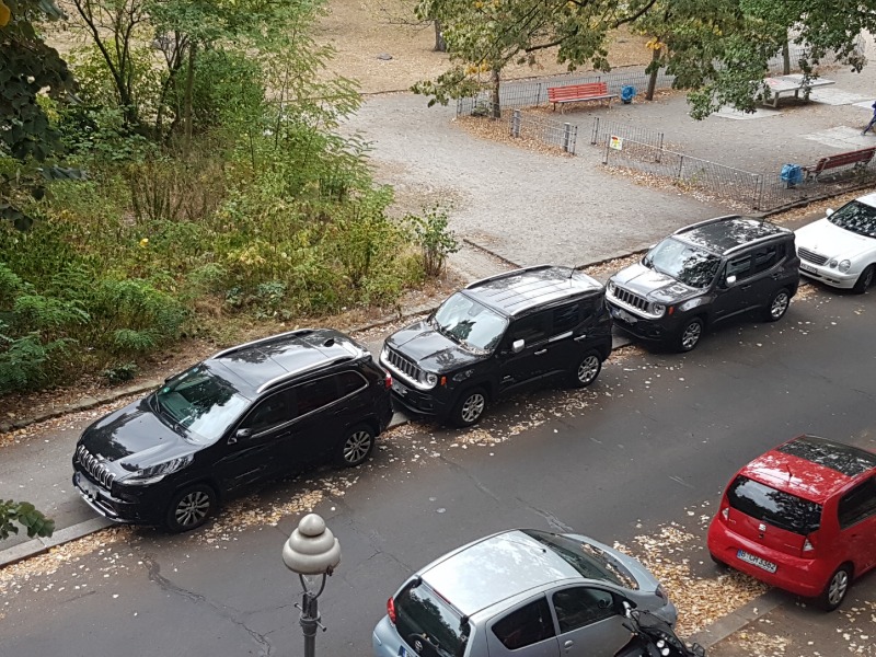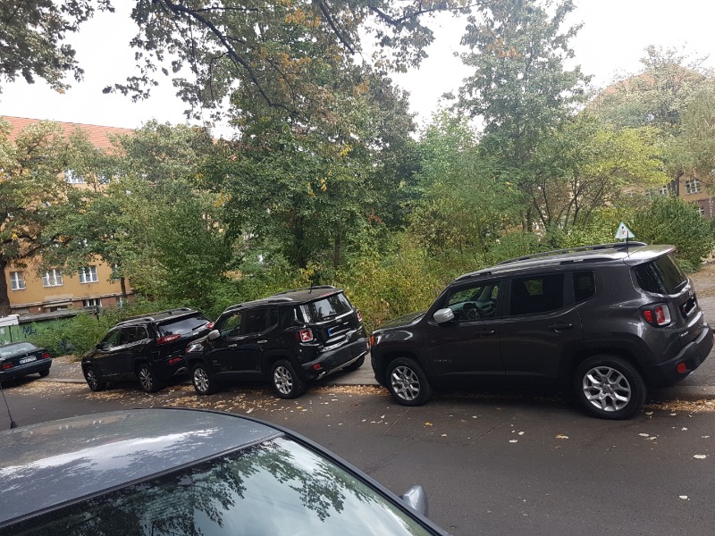 Der alte Renegade (Mitte) geht unrepariert an einen Händler, der Cherokee ist zur Miete bis morgen, und seit heute steht bei uns unser neuer Neuer, ein MY18 Limited 4x4 in Granite Chrystal.