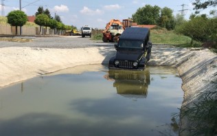 Der Wrangler fuhr mit mir im 2H Modus die Hubbelstrecke, und auch hier sollte ich das Lenkrad gerade halten, aber auch hier wollte das Lenkrad nicht immer so wie ich, und zum Glück war die 3 Hand vom Fahrlehrer da. Die gleich Strecke nochmals diesmal aber in die Hubbels rein, und auch hier brauchte ich Hilfe beim Lenken. Mensch, das ist alles gar nicht so einfach. Lacht nicht. Die letzte Fahrt ging dann durch das Wasserloch und wieder schräg raus in die Hubbels rein und über eine Böschung runter. An die Einstellungen im Wrangler am Wasserloch kann ich mich nicht mehr erinnern. Die Bilder und auch das Video sehen so aus, als wenn die Strecke so pillepalle gewesen wäre, war es aber nicht, wirklich nicht. Im Auto sitzend, kommt einem das vor wie AAAAAAHHHHHHHHH WIR KIPPEN UM
