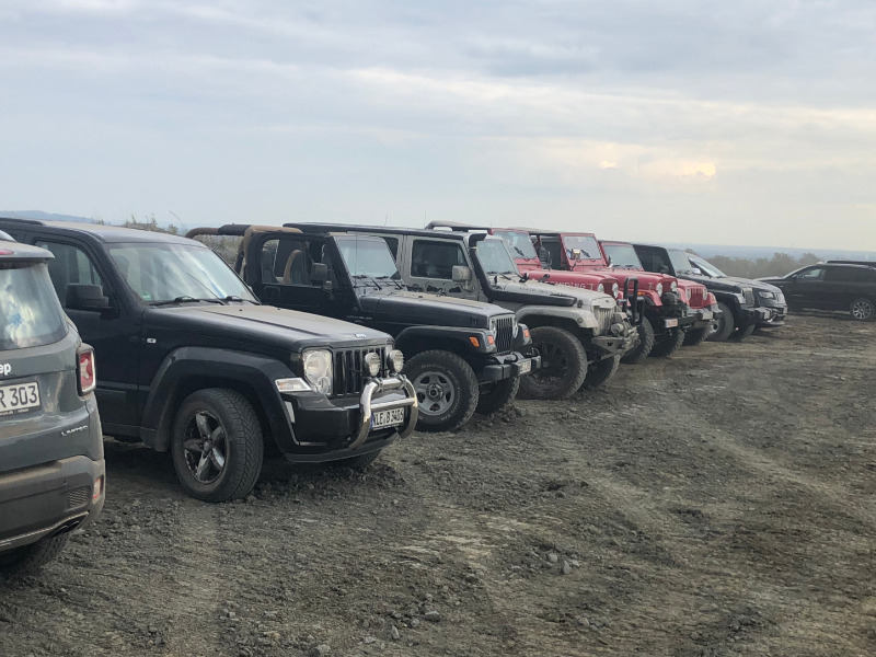 Hatte dann nochmal den Thomas angesprochen und wollte ihn nochmal fragen, ob denn nicht etwas spektakuläreres machbar wäre. Er meinte nur: "Wie viele seid ihr?" Ich: "4" Er: "Dahinten steht ein JK - Schlüssel steckt. Fahrt einfach hinterher!".