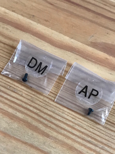 Aus dieser Erfahrung gelernt habe ich die Schrauben, die zu viel in der Packung waren, wieder in ihre Beutel gepackt und werde mir eine kleine Reserve aufbauen.