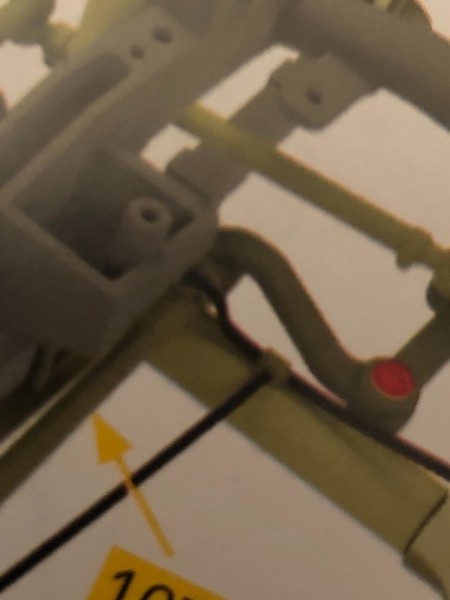 Wie ihr sehen könnt, war das Thema nun die Montage der Bremsleitungen. Juhu, noch mehr filigrane Gummischläuche, die mit micro-winzigen Plsastikteilen zusammengesteckt werden müssen - alles mit Hilfe einer Pinzette und immer gegen leichten bis mittleren Widerstand. Ich war begeistert, die Nerven lagen brach. Hier ein Beispiel: