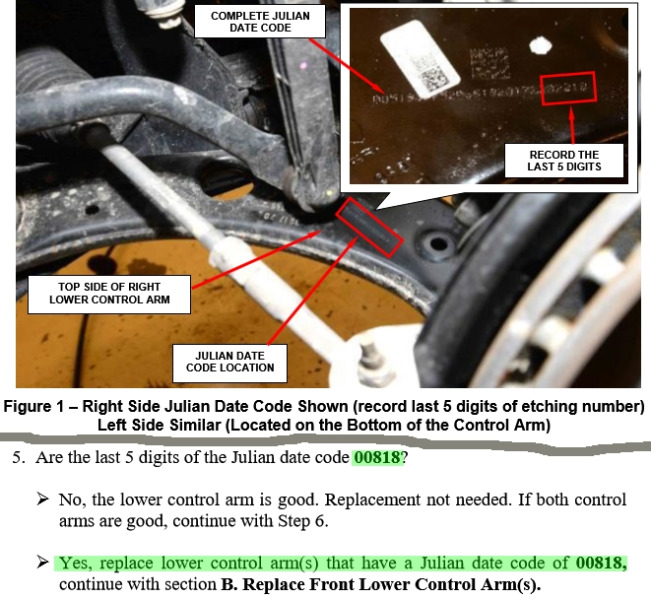 Die verbaute Charge der fehlerhaften Querlenker hat als letzte fünf Ziffern das Datum "00818" eingeätzt. Laut offiziellem Rückruf Dokument sind alle Querlenker mit dieser Nummer zu tauschen. Nur wenn eine andere Nummer dort steht, ist kein Tausch erforderlich.