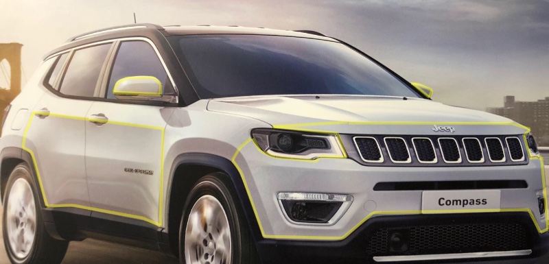 Der erste Weg nach der Abholung soll uns, nach Wunsch von Madame und weil sie Ihre gestressten Geschlechtsgenossinen auf dem Lidl- Parkplatz zu oft kennen gelernt hatte, zum Folierer führen. Der Anfrage, lt. im Bildanhang markierten Umfang, folgte mit 3M Lackschutzfolie ein erstes Angebot über bescheidene 1.500€. Scheint mir ein Schnäppchen zu sein...