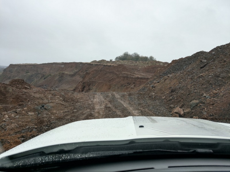Das Gelände selber ist ein noch in der Nutzung befindlicher Steinbruch. Das Gelände ist ziemlich groß und bietet für alle Ansprüche etwas. Man darf im Prinzip überall fahren, wo Spuren sind. Ob man das dann im Einzelnen auch möchte muss ein jeder selber entscheiden. Ich habe mir zunächst mal einen Überblick verschafft und bin erstmal nur alle augenscheinlich gut zu befahrenden Wege abgefahren.