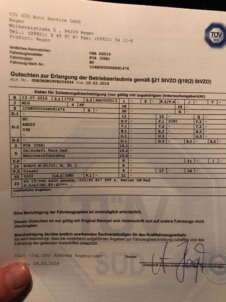 Vielen Dank. Also ich war gestern nochmal bei meinem TÜV Menschen und er meinte er will das selbst am Fahrzeug prüfen.