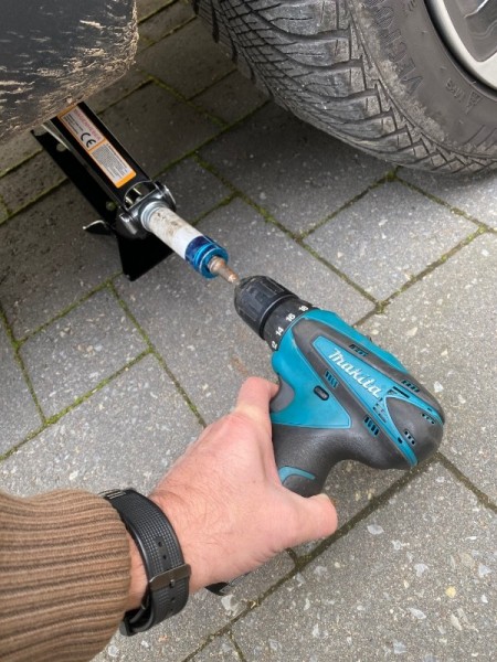 ScherenwagenheberDer Scherenwagenheber sollte nochmal am Gewinde gut gefettet werden. Wenn ich nun noch einen einzigen Schlagschrauber fürs Wagenheben, Bolzen lösen und wieder anziehen brauche, verringert sich mein Räderwechselaufwand imens.