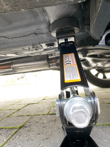 Tatsächlich bekomme ich mit meiner Sammlung an Rangierwagenheber den Compass nicht vom Boden, hab ich garnicht auf dem Schirm gehabt.Gestern wurde er geliefert, gleich ausprobiert, super! Aus meiner Sicht möchte ich eine Empfehlung für den Gummipuffer oben am Aufsatz aussprechen (die meisten auf Amazon haben leider nur eine Metalschienenaufnahme) sowie den Nuß-17er Anschluß am Gewinde. Meine kleine Makita DF330DWE mit nur 24Nm dreht den Wagen hoch, ist dafür aber sicher nicht prädestiniert (ein stärkerer muss ohnehin her). Vom Prinzip klappt das aber super. Da ich die Räder nun doch durchtauschen möchte habe ich mir gleich entsprechende Unterstellböcke bestellt. Auch diese haben (was selten zu finden ist) genutete Gummiaufnahmen.