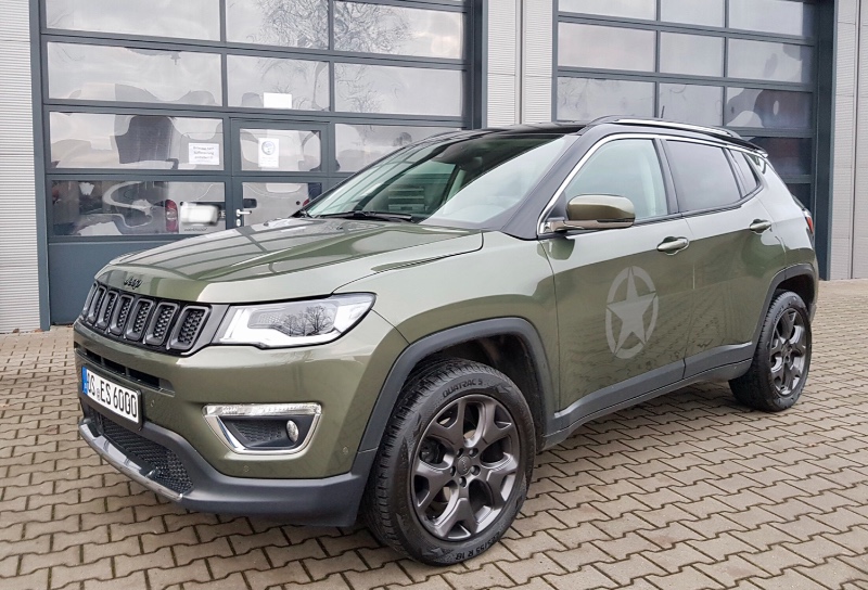 Seit Freitag gibt‘s keinen Chrom mehr am Compass. Fensterrahmen, Dachrehling, Umrandung der Nebler in schwarz glänzend. Leiste an der Front in schwarz matt...