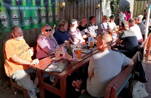 • Voll war es! 10 Fahrzeuge (?!) und 14 Teilnehmer (!!) hatten am Samstag den Weg ins Montgomery Champs gefunden, gemeinsam geschnackt (wie im Norden so die lockeren Gespräche heißen), gegessen und den einen oder anderen - meist nicht-alkoholischen - Drink genommen haben. Dabei wurden natürlich wieder Erfahrungen ausgetauscht, recht viel über absolvierte Reisen gesprochen und die aktuellsten Erlebnisse mit den Jeeps abgehandelt. Platz für andere Themen war natürlich auch.