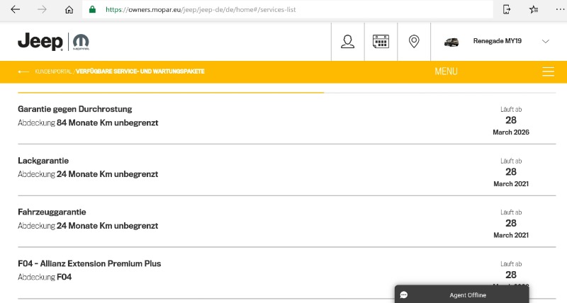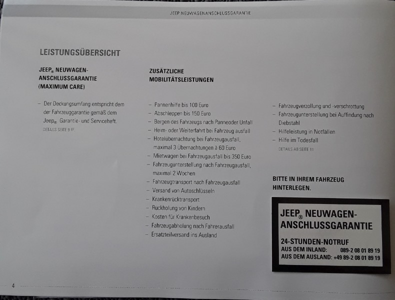 für in in Deutschland im Vertragshandel gekaufte, neue Jeeps gibt es ja die 2+2 Jahre Garantie.