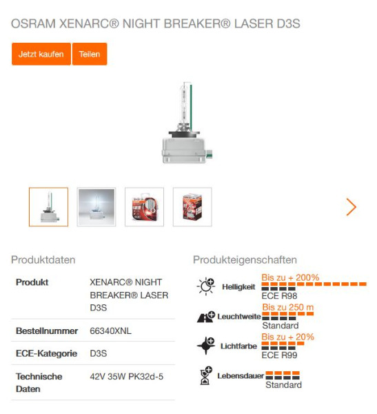 • Noch eine Frage dazu. ich habe ja diese 35W Osram Xenarc Night Breaker Laser, Duo-Box gekauft. Sind also zwei Lampen in der Box. Heißt das je eine Lampe pro Scheinwerfer? Oder benötige ich pro Scheinwerfer zwei Lampen (Fahrlicht und Fernlicht), also zwei dieser Duo-Boxen?