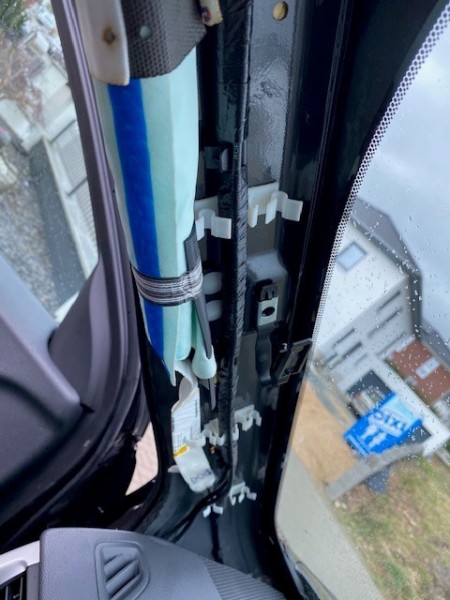 hat schon mal jemand die A-Säule auf der Innenseite die Blende (das Hellgraue lange Teil) anbgenommen. Ich möchte beide einmal runternehmen zum reinigen und noch etwas verbauen was ich in allen Fahrzeugen habe deswegen muss da noch ein Kabel dahinter ![]()