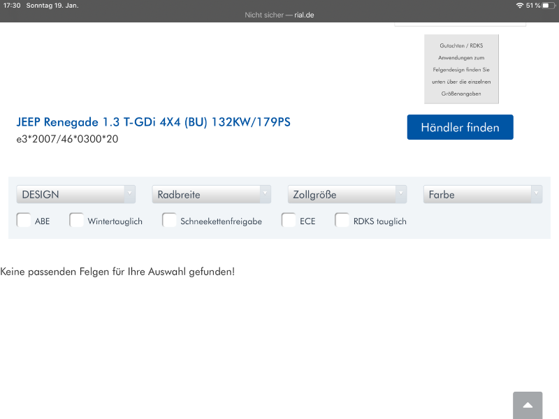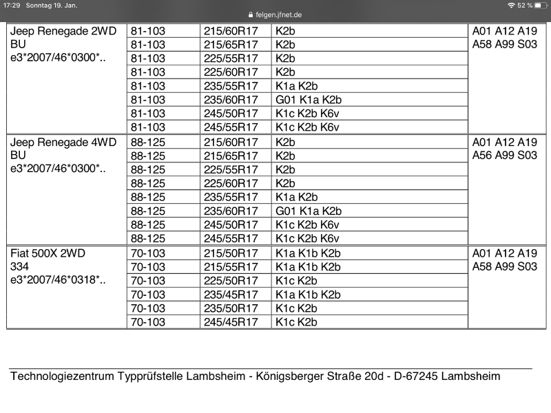 Ich bin nämlich auch auf der Suche nach Sommerreifen und neue Felgen und wenn ich im Konfigurator Jeep Renegade Facelift ab Baujahr 2018 eingebe, habe ich immer einen anderen Lochkreis.
