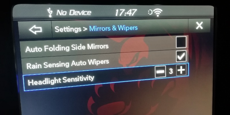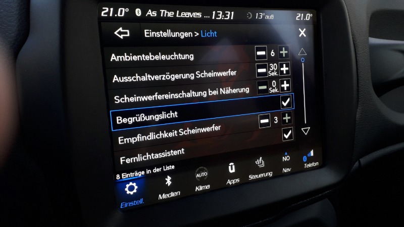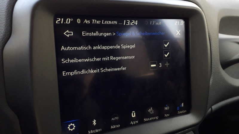 • Empfindlichkeit Scheinwerfer könnte der Lichtsensor sein der das Abblendlicht damit früher oder später einschaltet. Würde ich mir beim Cherokee auch wünschen den die Lichtautomatik ist über empfindlich. Sprich das Abblendlicht geht schon an auch wenn ich die Scheinwerfer nichtmal von der Helligkeit auf der Straße erkenne.