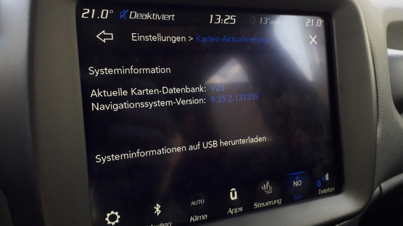 Daher war ich gestern nochmal bei meinem wirklich kompetenten Jeep Händler und dieser hat mir gleich den USB Stick mit einem erst 5-tages alten Update in die Hand gedrückt.